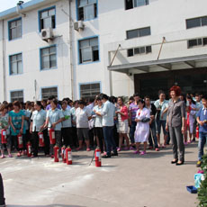 火災通報:假定在車間內部發生火災異常,立即通過車間主任,由車間主任立即至總指揮,火災具體地點及火災具體狀況。總指揮接到報警時立即利用廣播,通知全體公司全體人員,并要求各組長負責組織人員疏散,同時演習干事立即就位,確認演習效果。(預計用時1分鐘)