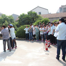 韋娟負責指導人員學習滅火器的使用,所有人員分批學習,做到100%全員培訓。